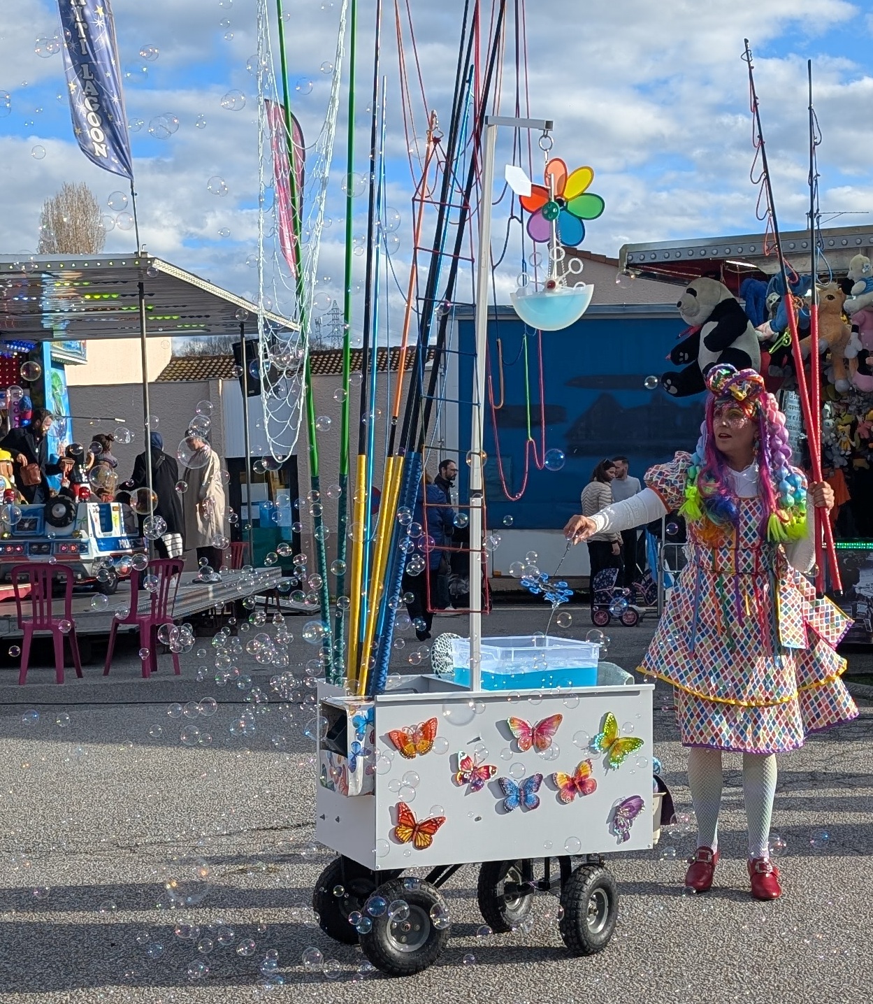 manèges, tirs à la carabine, toboggans, pêche aux canards, barbe à papa, etc…