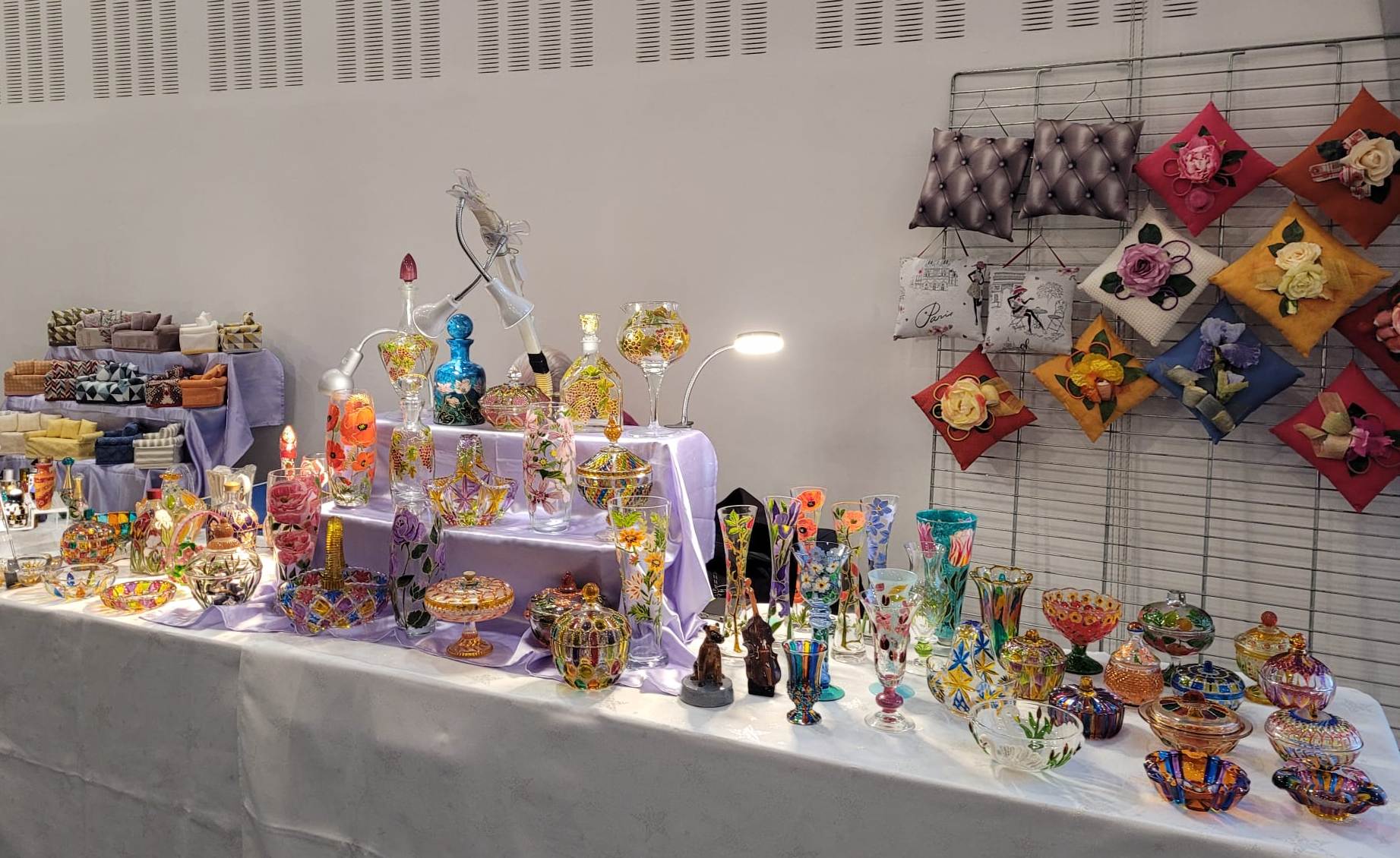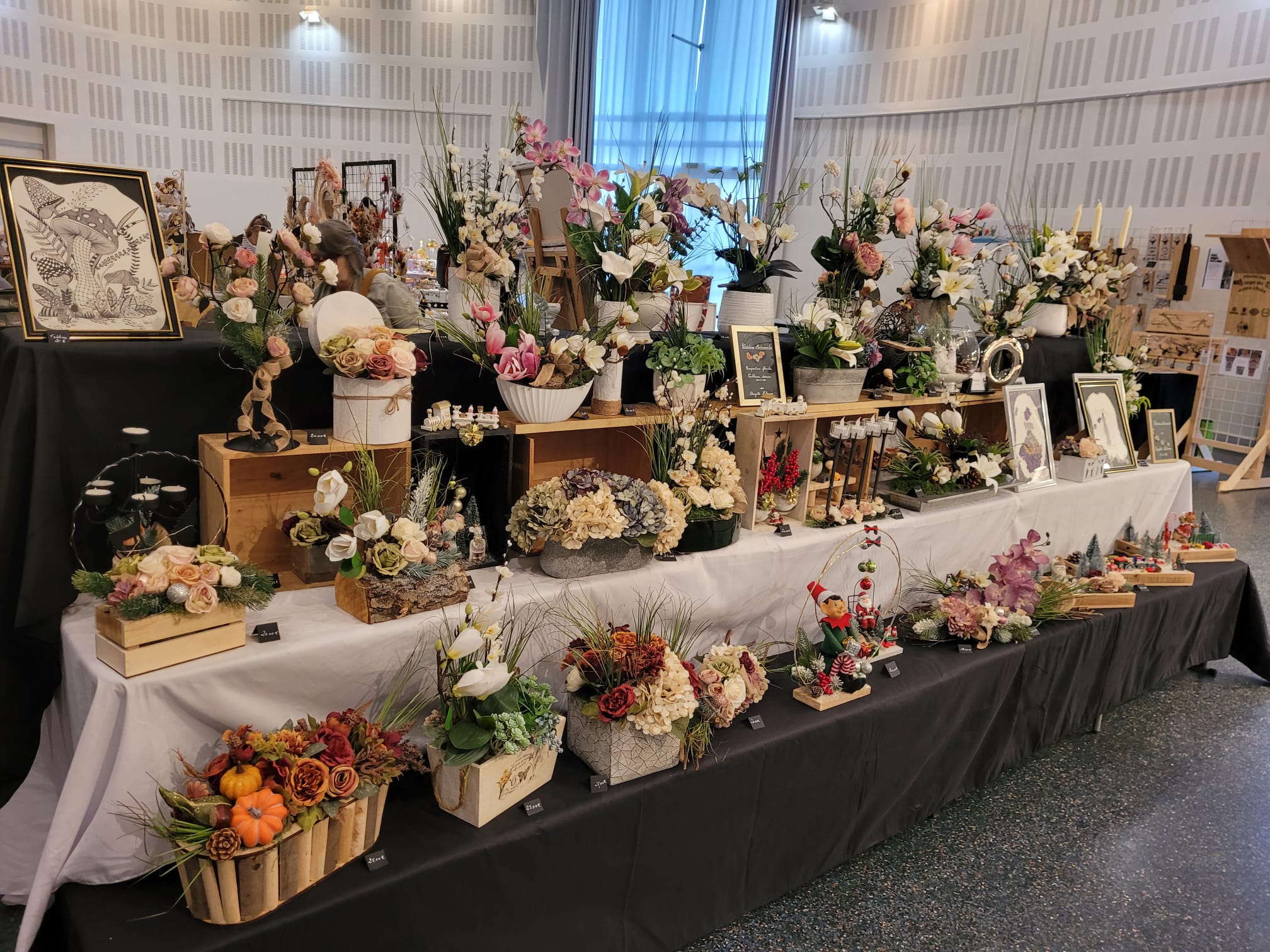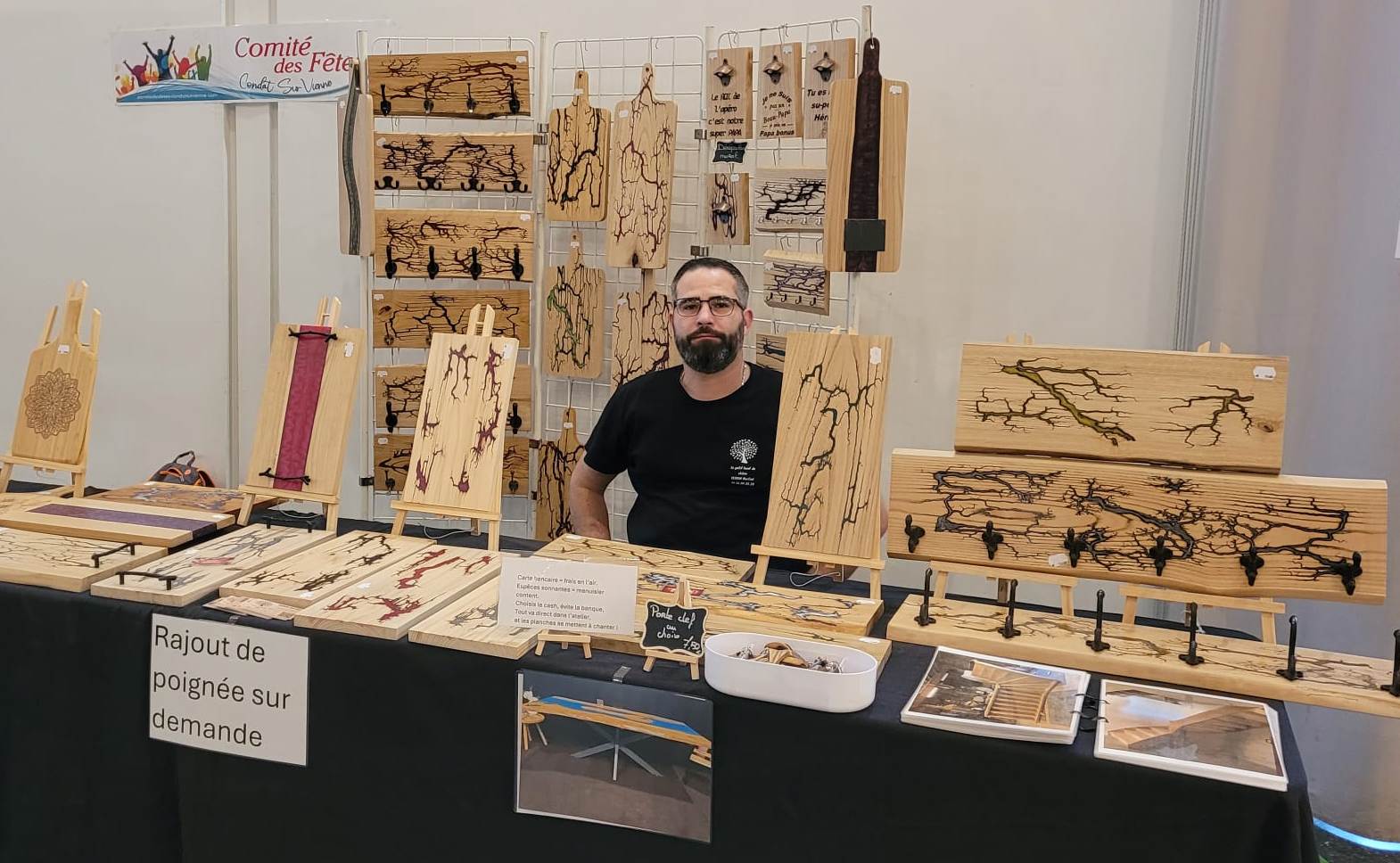 Pour faire le plein de cadeaux vous pourez y découvrir : des décor sur porcelaine, bijoux fantaisie, fleurs séchées, cosmétiques savons artisanaux, tableaux, artisanat du cuir, objets bois et résine, céramique, Emaux d’art, Sculpture en grés, Création de sac, verrerie, Broderie.