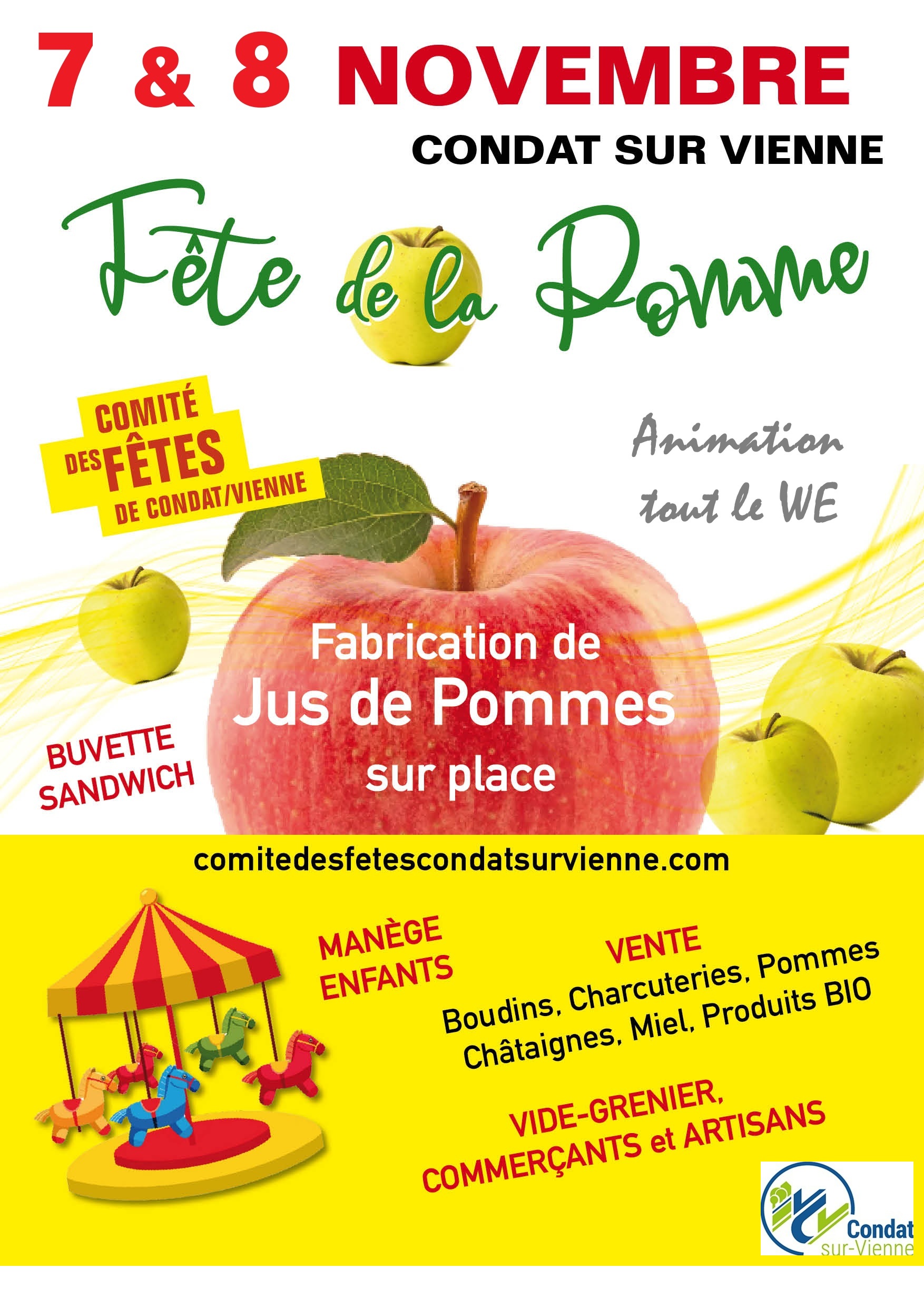 Chaque année, en novembre, la Fête de La Pomme sur un week-end, représente l’évenement incontournable et enchanteur, dans la commune de Condat sur Vienne..