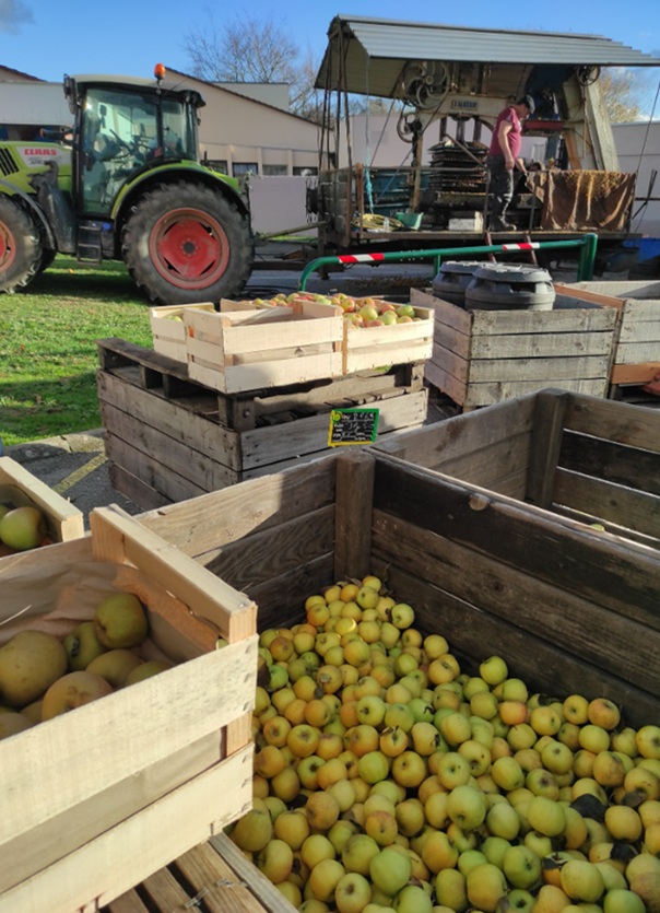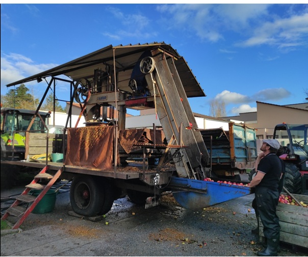 Les pommes sont broyées, et le jus embouteillé sur place, cela garanti la qualité de vente d’un jus de pommes non fermenté.