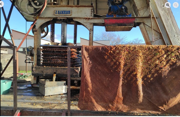 Il faut broyer puis écraser les pommes avec une presse au travers de toiles pour extraire ce bon jus de pomme. Celui ci devient du cidre après fermentation au bout d’une semaine.